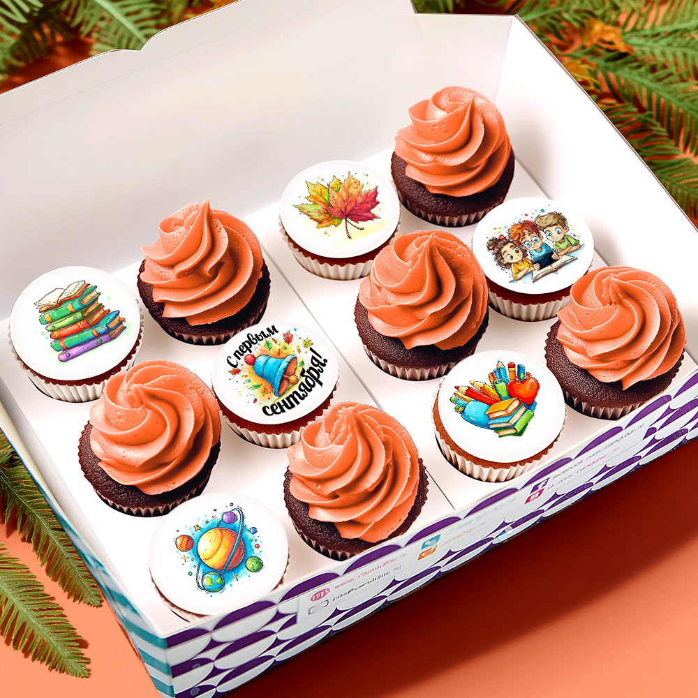 Капкейки - 1 сентября 12 шт - мастика и крем