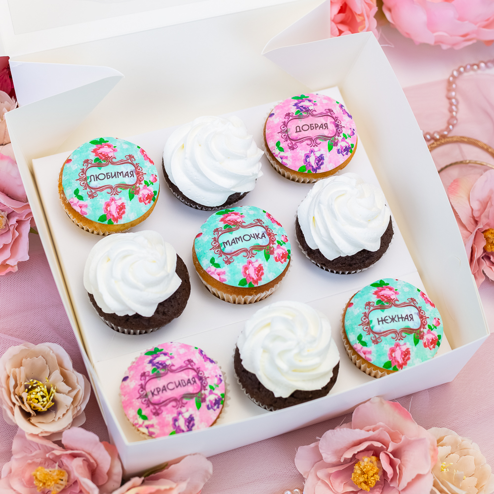 Капкейки "Мамочке" с кремом и мастикой - 9 шт.