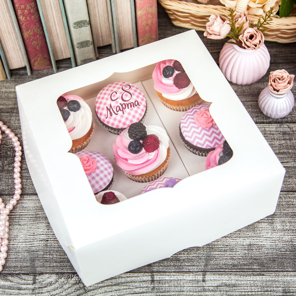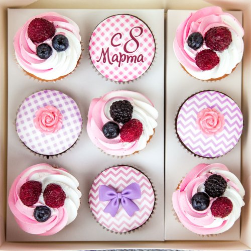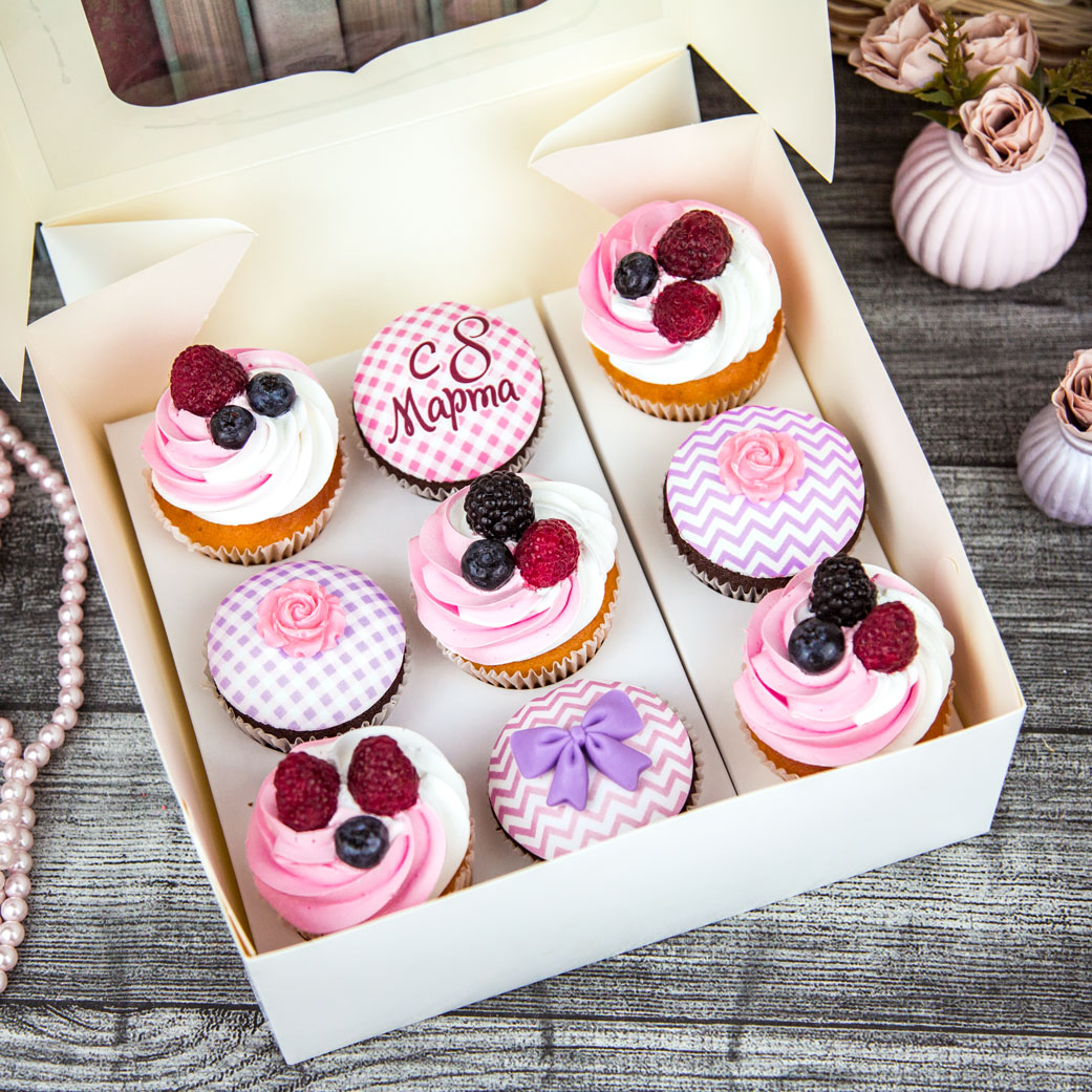Капкейки "С 8 марта" с кремом и мастикой - 9 шт.