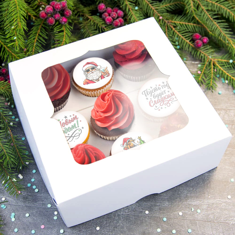 Яркий новогодний набор из 9 капкейков - закажите аппетитный подарок сейчас, и мы доставим вам свежие капкейки уже завтра!