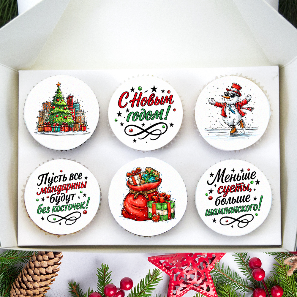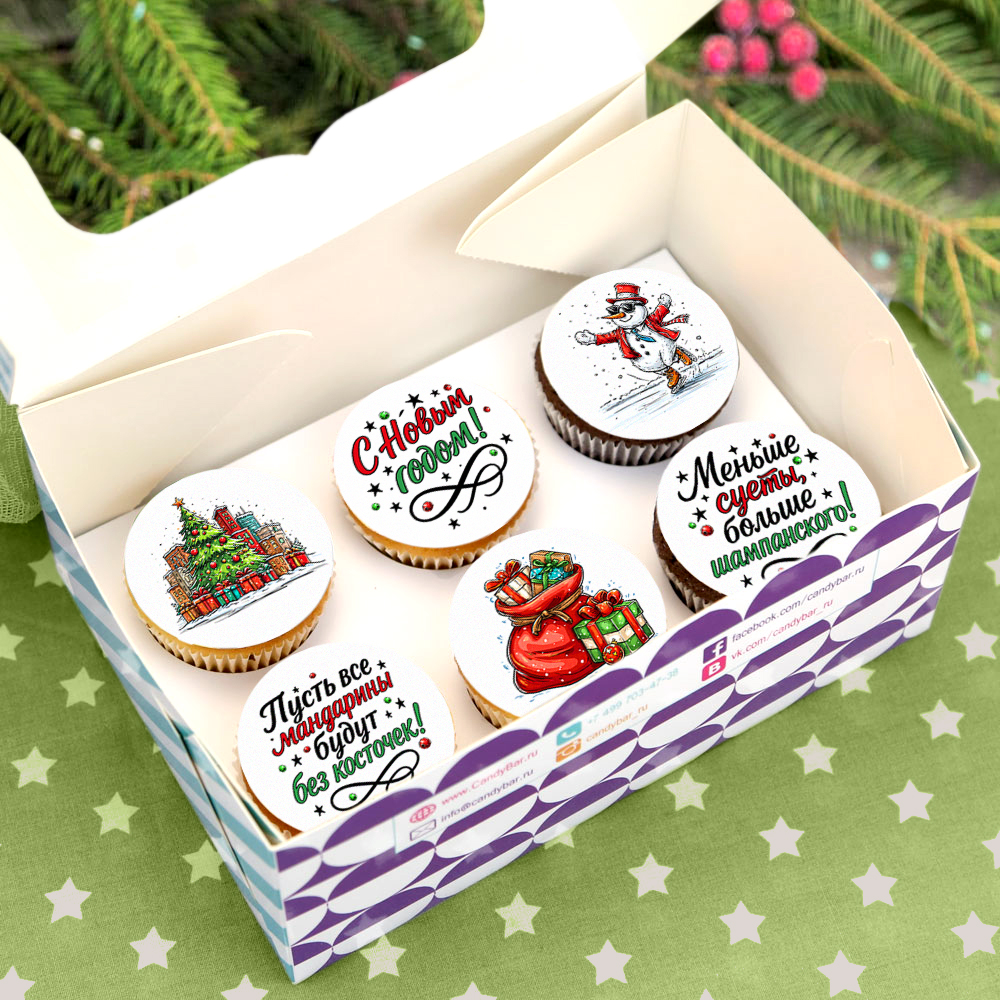 Набор капкейков из 6 штук с новогодними принтами станет украшением вашего Нового года. Закажите сейчас - доставка уже завтра!