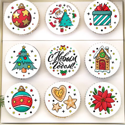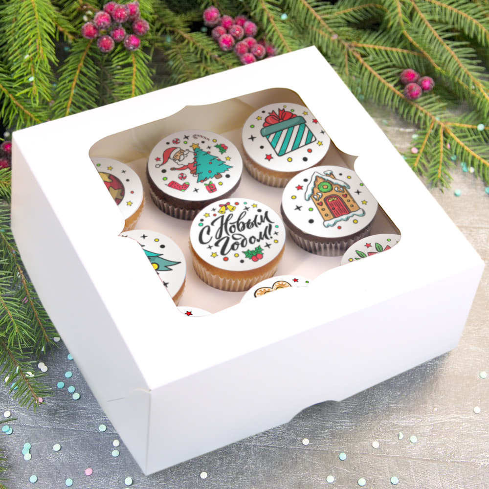 Подарочный набор капкейков к Новому году - символичные съедобные принты и нежные начинки внутри. Закажите сейчас - доставка уже завтра.