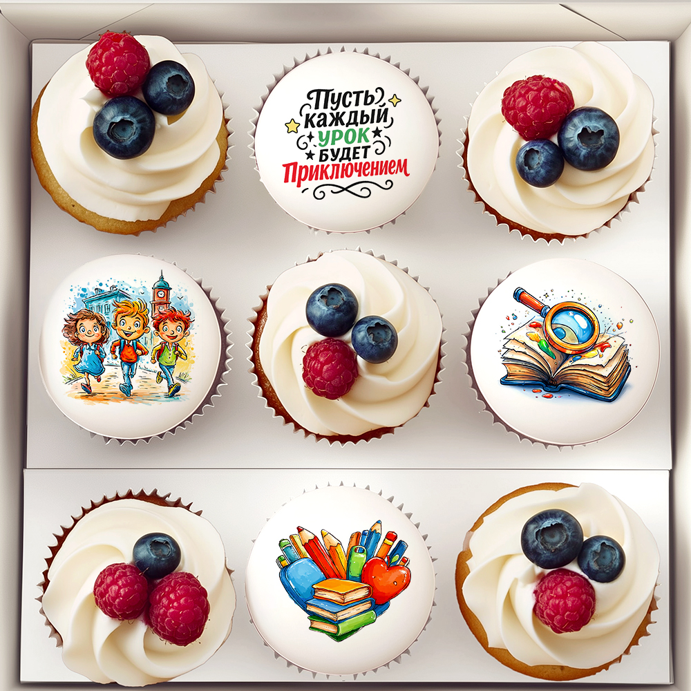Капкейки с ягодами "Здравствуй, школа!" 9 шт