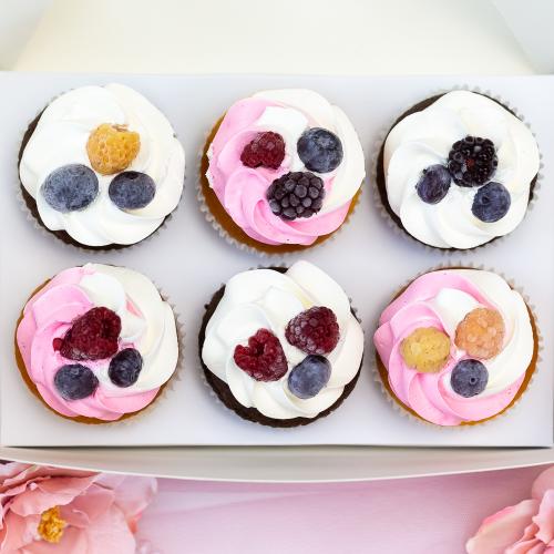 Все описаниеНебольшой набор капкейков с шапочками крема и свежими ягодами