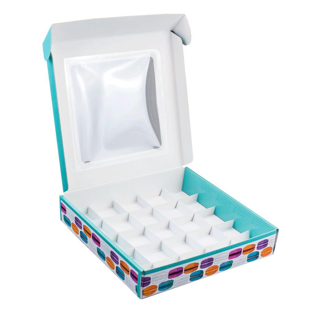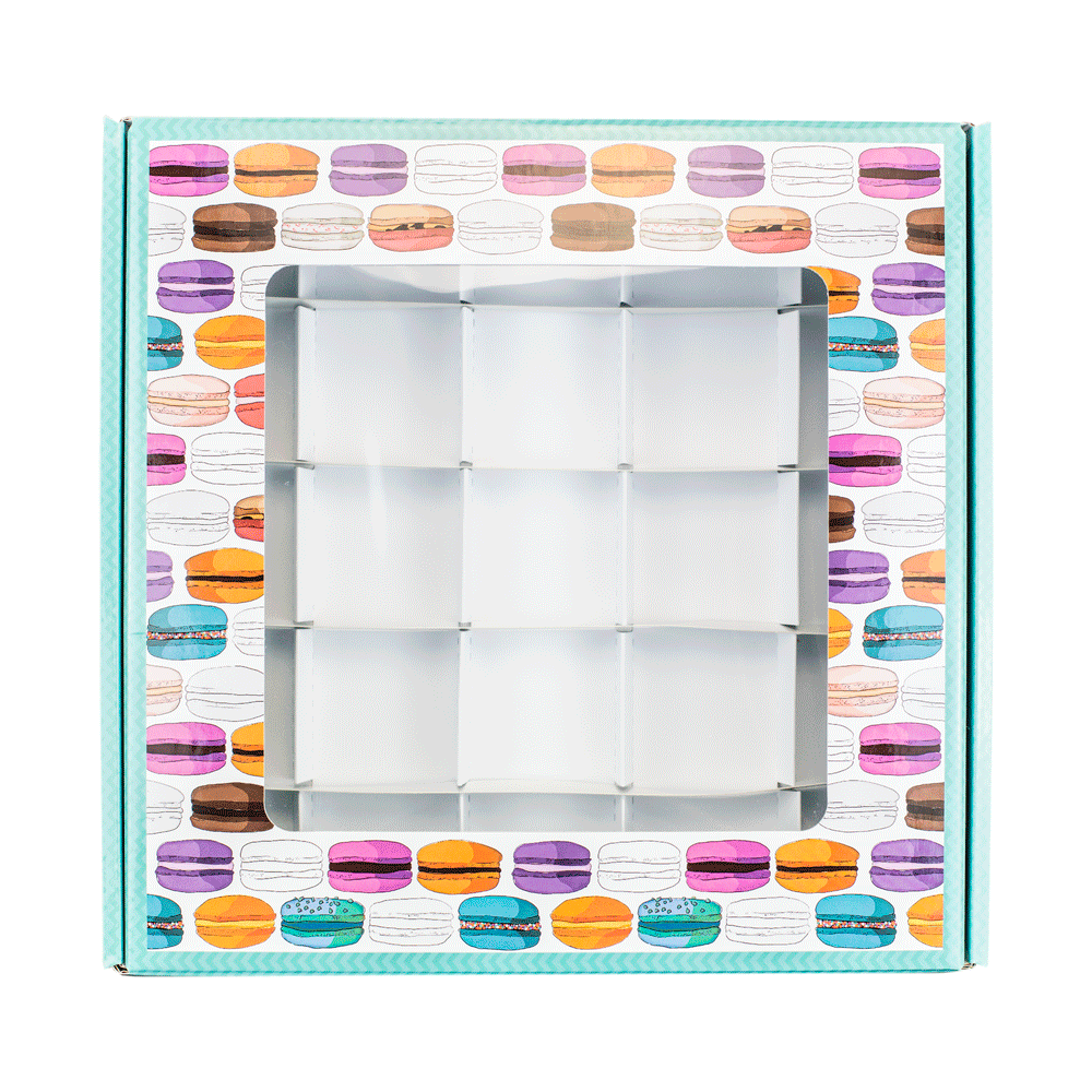 Все описаниеФирменная цветная коробка на 25 макарунов, с прозрачным окном.