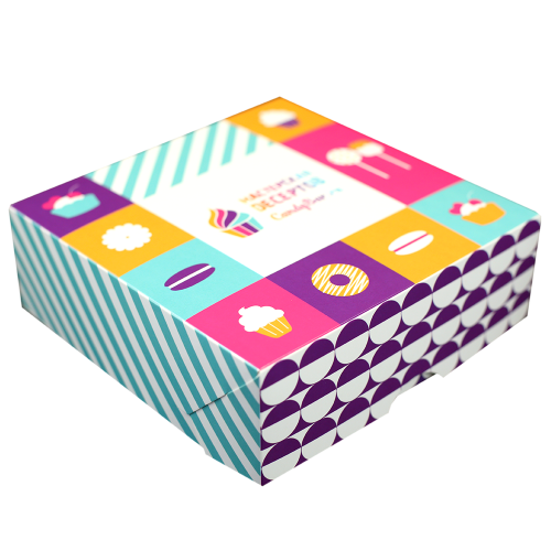 Коробка 9-18 макарун квадратная цветная