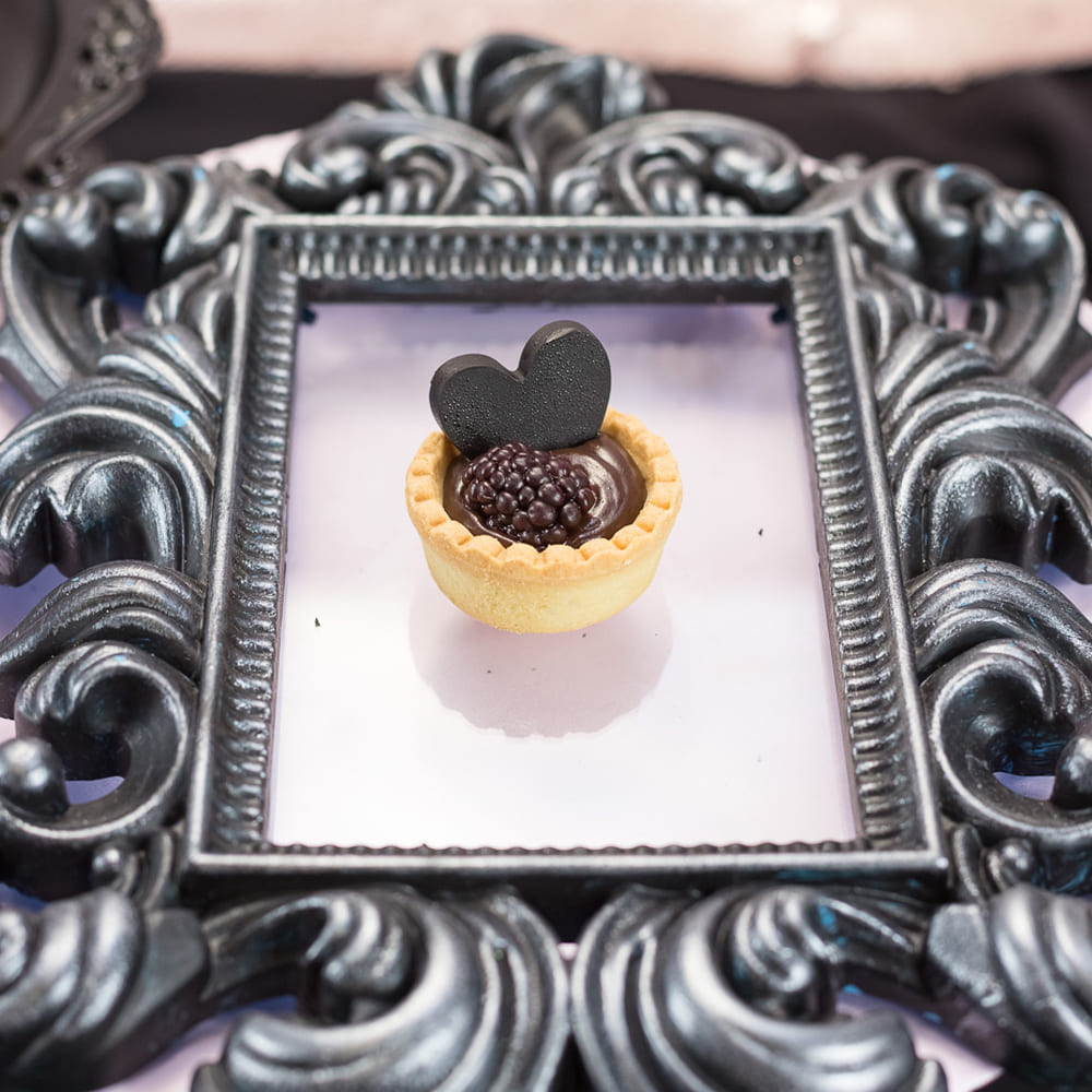Корзиночка из песочного теста со сливочным кремом черного цвета.