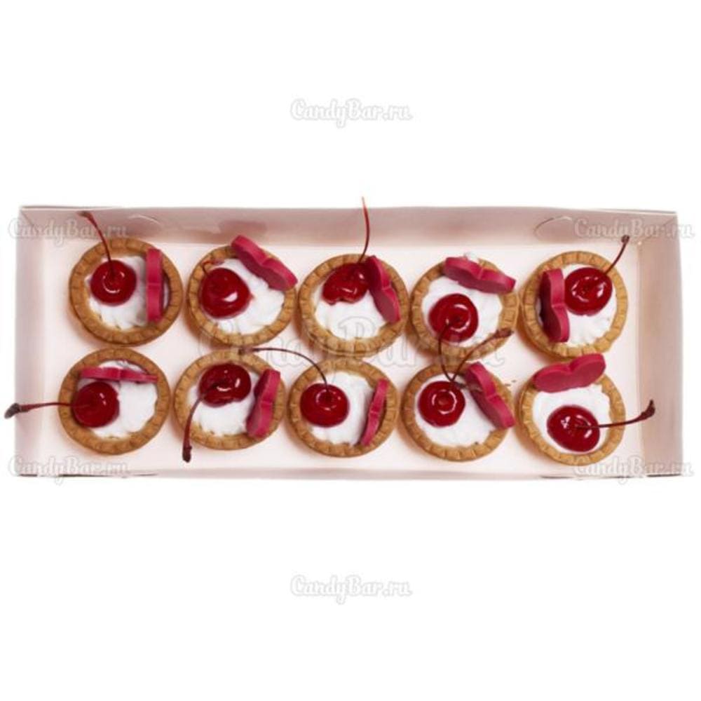 - Песочное тесто, сливки, шоколад, коктейльная вишня