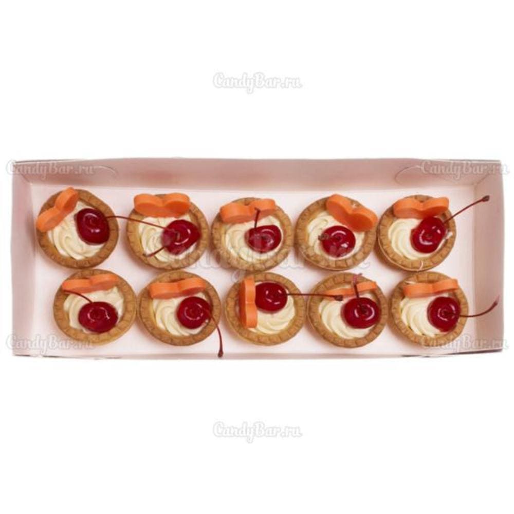 - Песочное тесто, ванильный крем, шоколад, коктейльная вишня