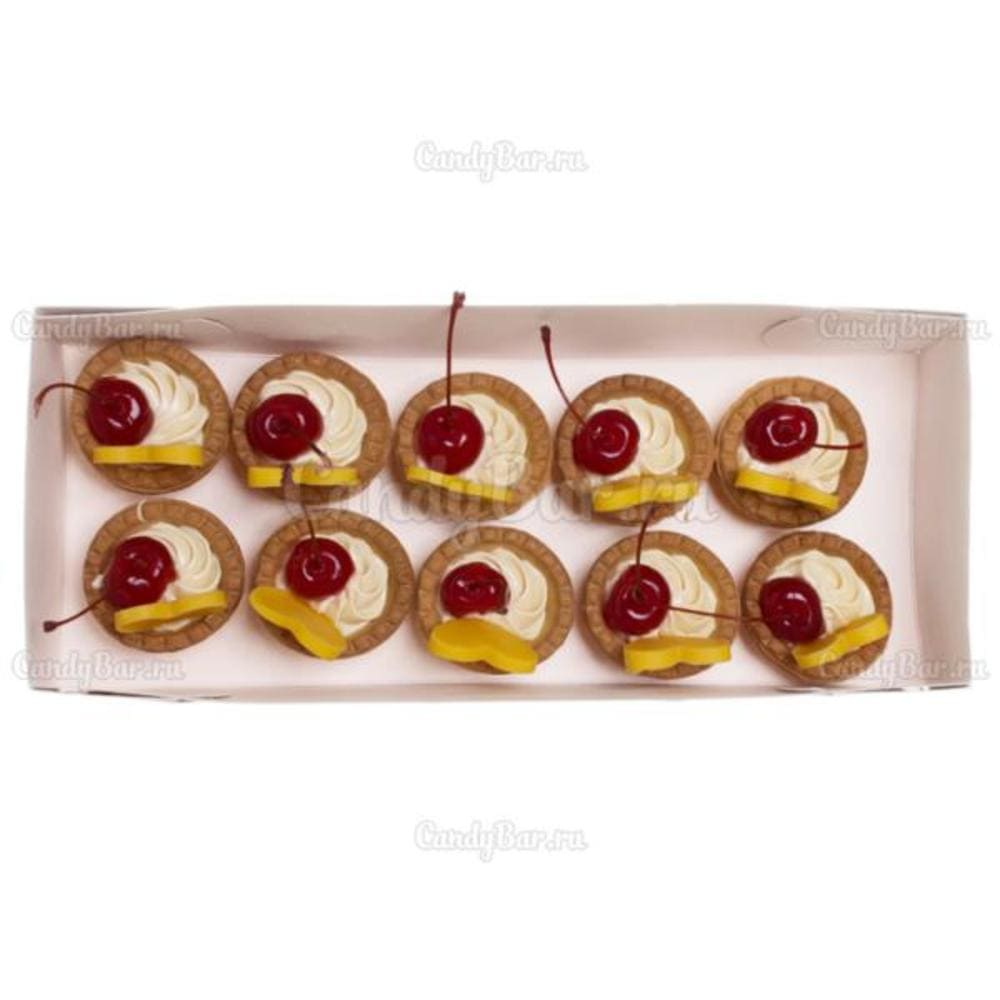 - Песочное тесто, ванильный крем, шоколад, коктейльная вишня