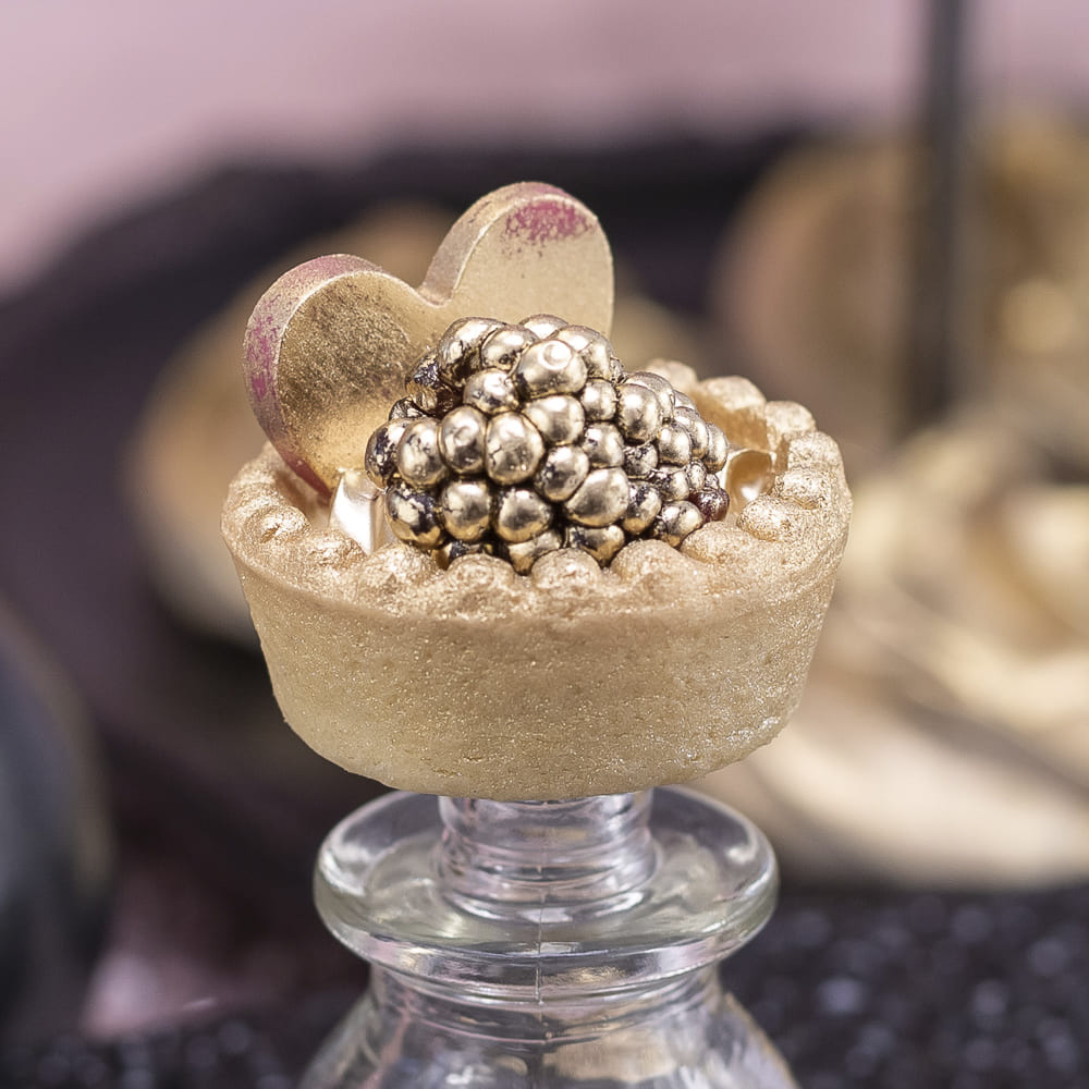 Украшена ягодой и сердечком из шоколадной глазури в серебряном цвете. Минимальный заказ от 20 штук и далее кратно 10.