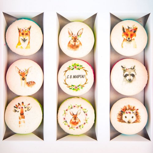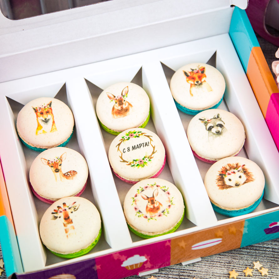 Все описаниеПодарочный набор воздушных макарунов из миндальной муки с фруктовой начинкой. Удивите близких нежными пирожными со съедобными принтами!