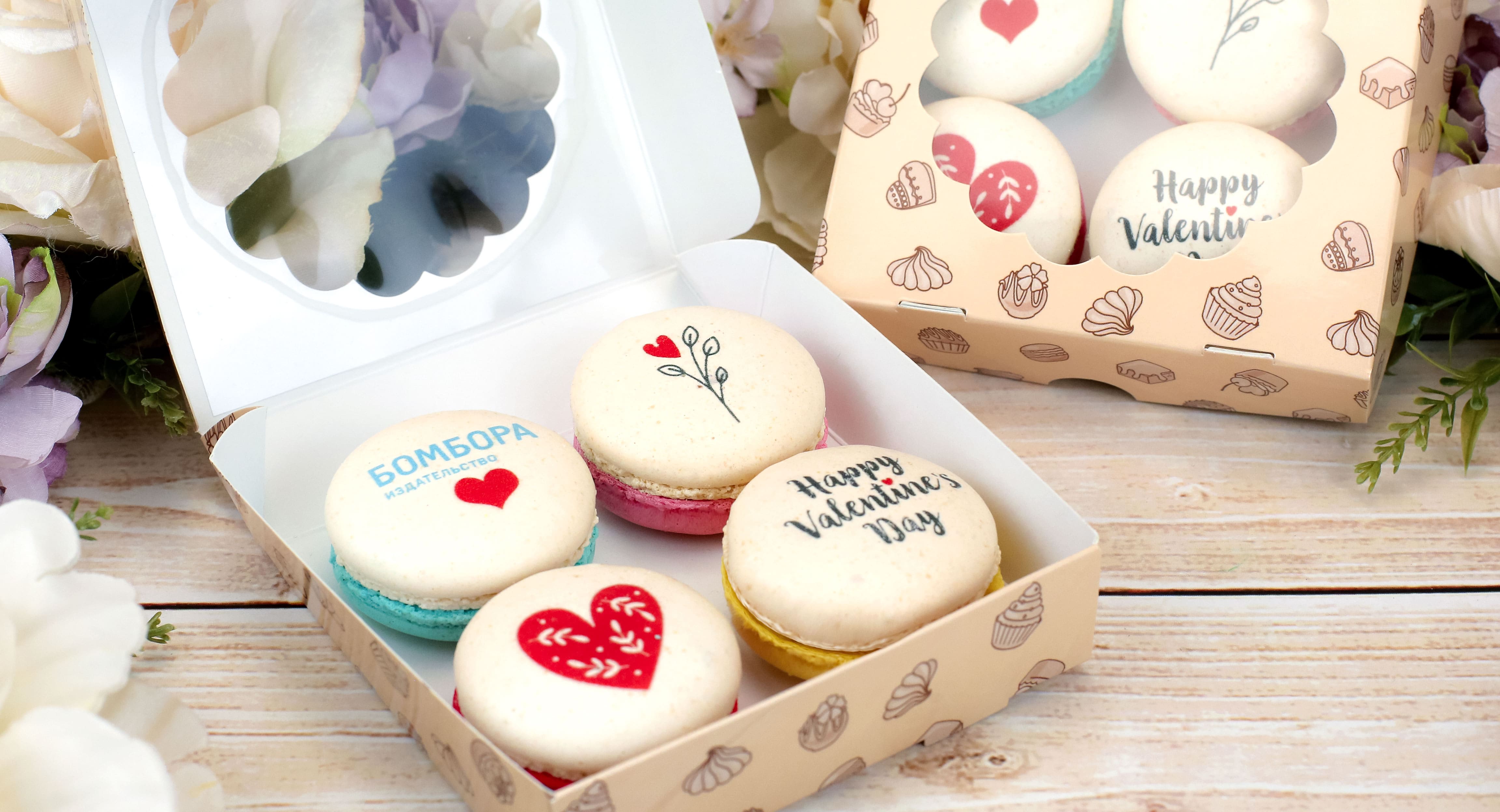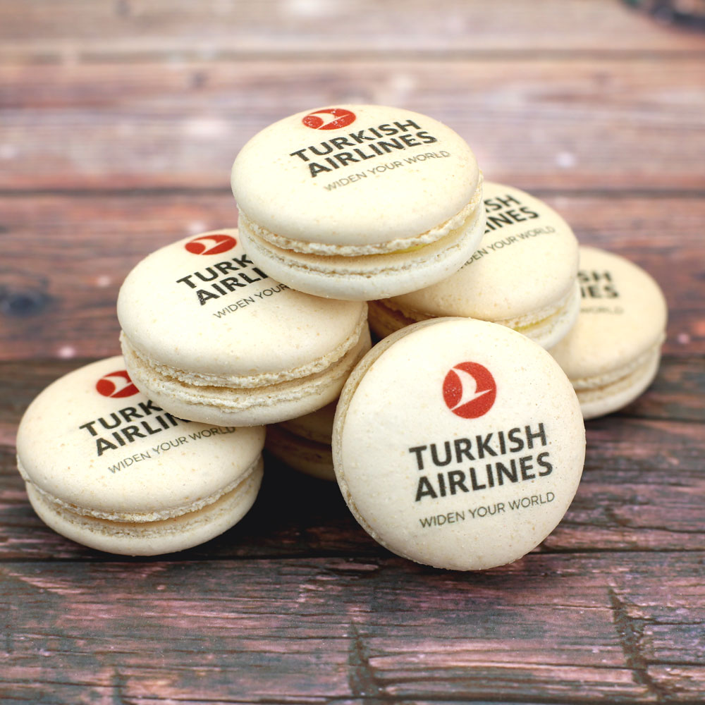 Такой вид печати логотипа на макаруне применяется, если ваш логотип выполнен в виде отдельной надписи без фона. Мы напечатаем ваш лого на макаруне любого цвета.