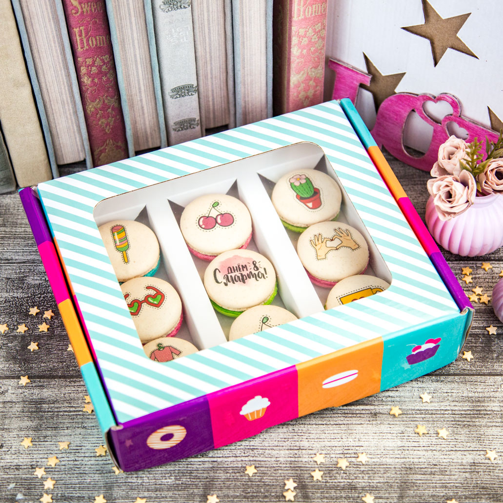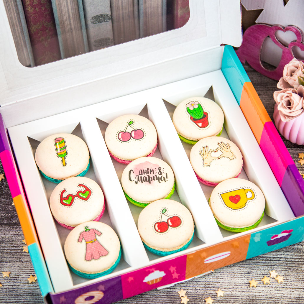 Макаруны "Стикеры" на 8 марта, 9 шт