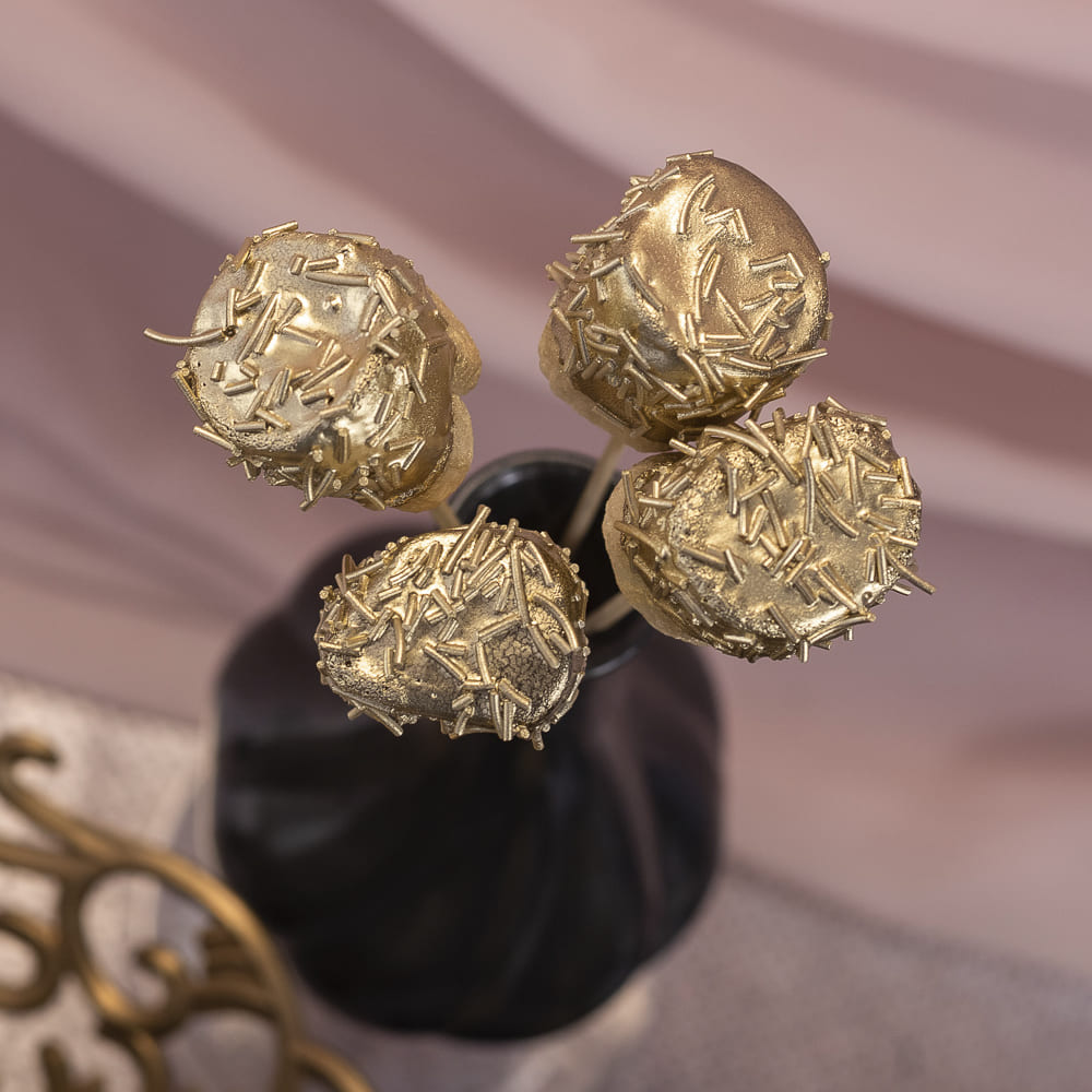 Все описаниеВоздушный зефир-маршмеллоу в шоколадной глазури золотого цвета, с мягкой посыпкой.