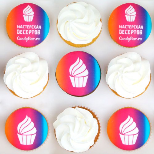 Набор капкейков с лого, крем и мастика, 9 шт.