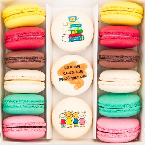 Все описаниеПодарочный набор макаронс для классного руководителя.