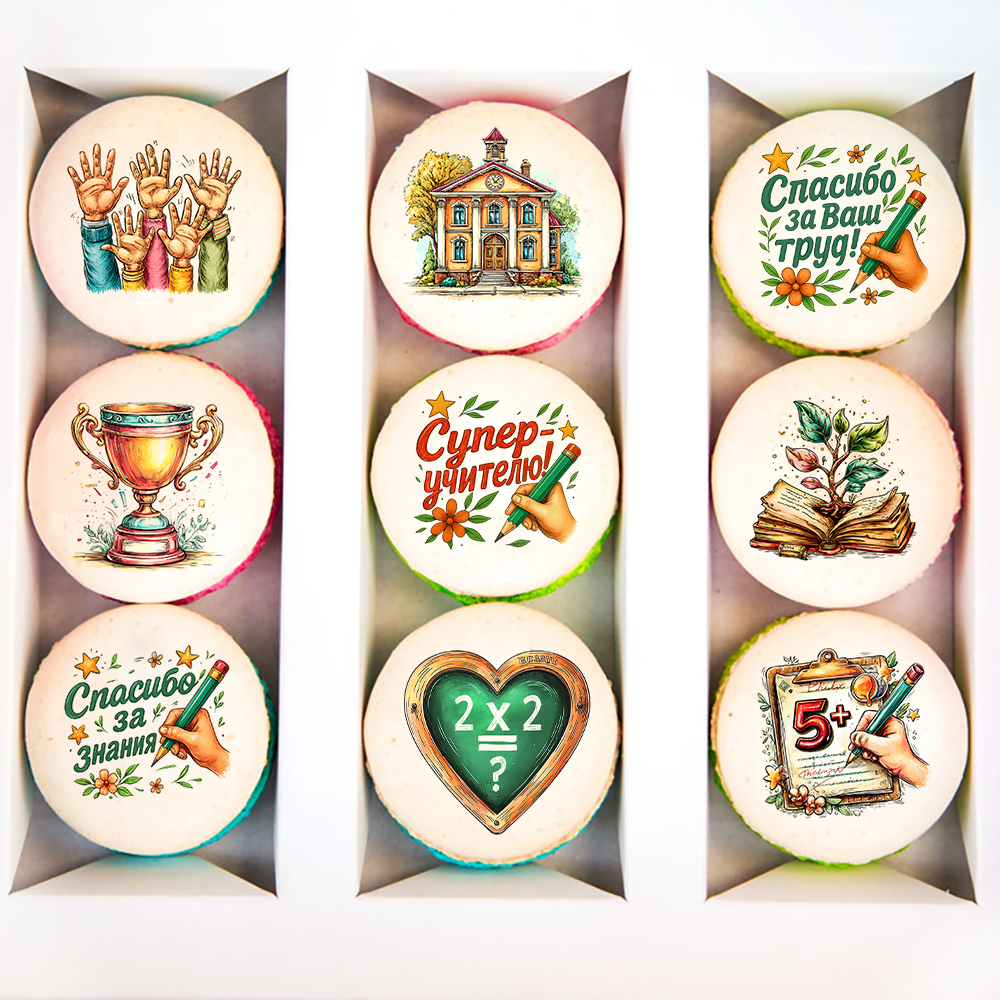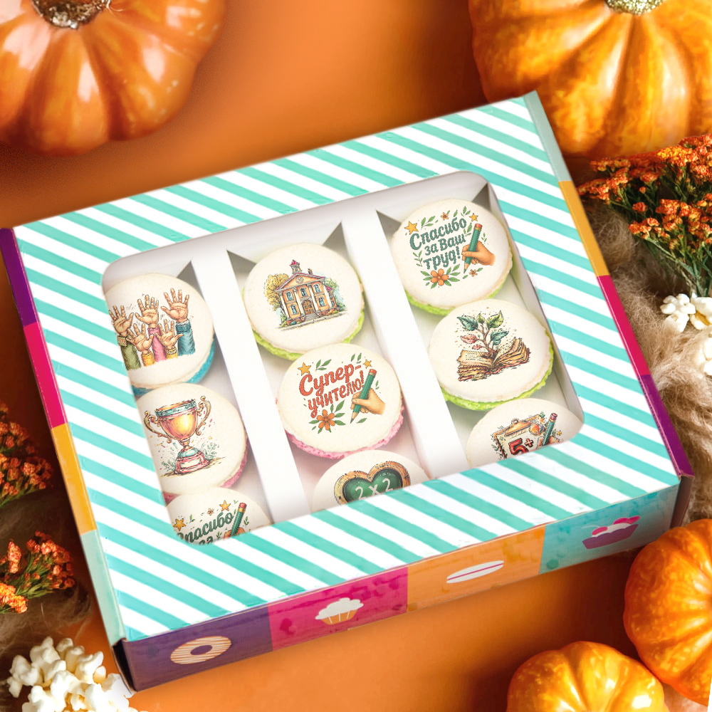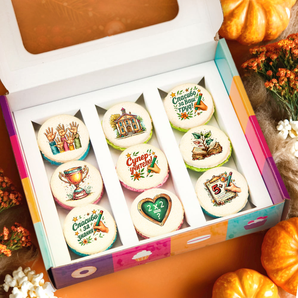 - Сахарная пудра, миндальная мука, белок, начинка ассорти (фруктовая/кремовая)