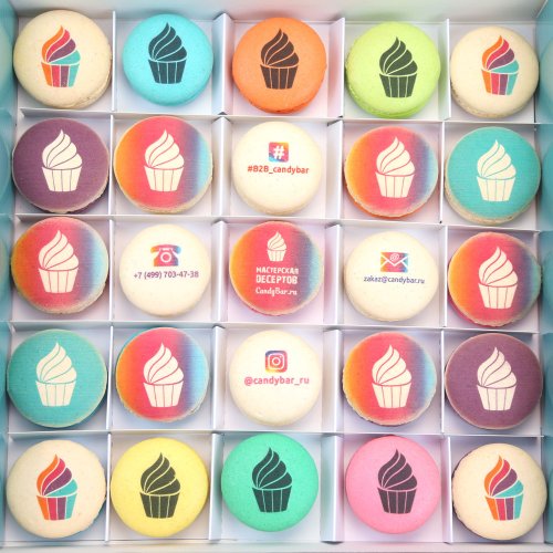 Возможна печать на макарунах логотипа любой сложности - ваш персональный менеджер подробно проконсультирует вас и быстро отправит расчет.<br>