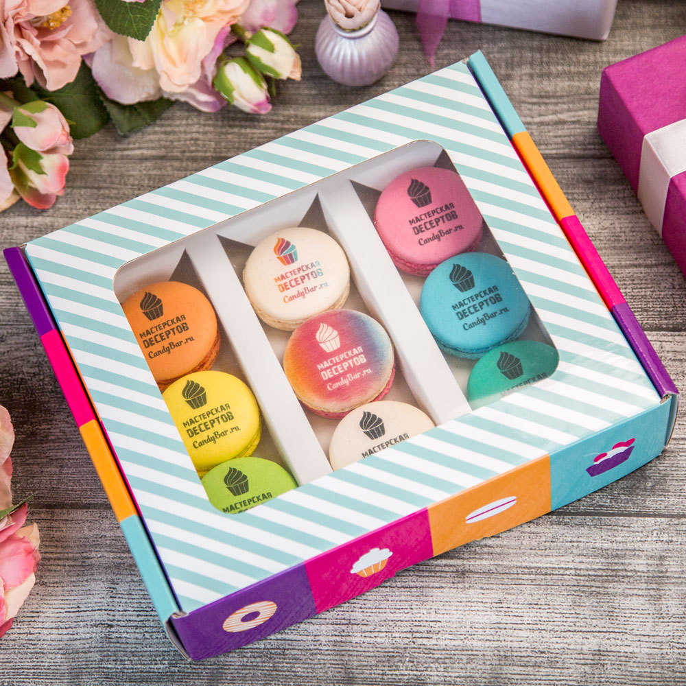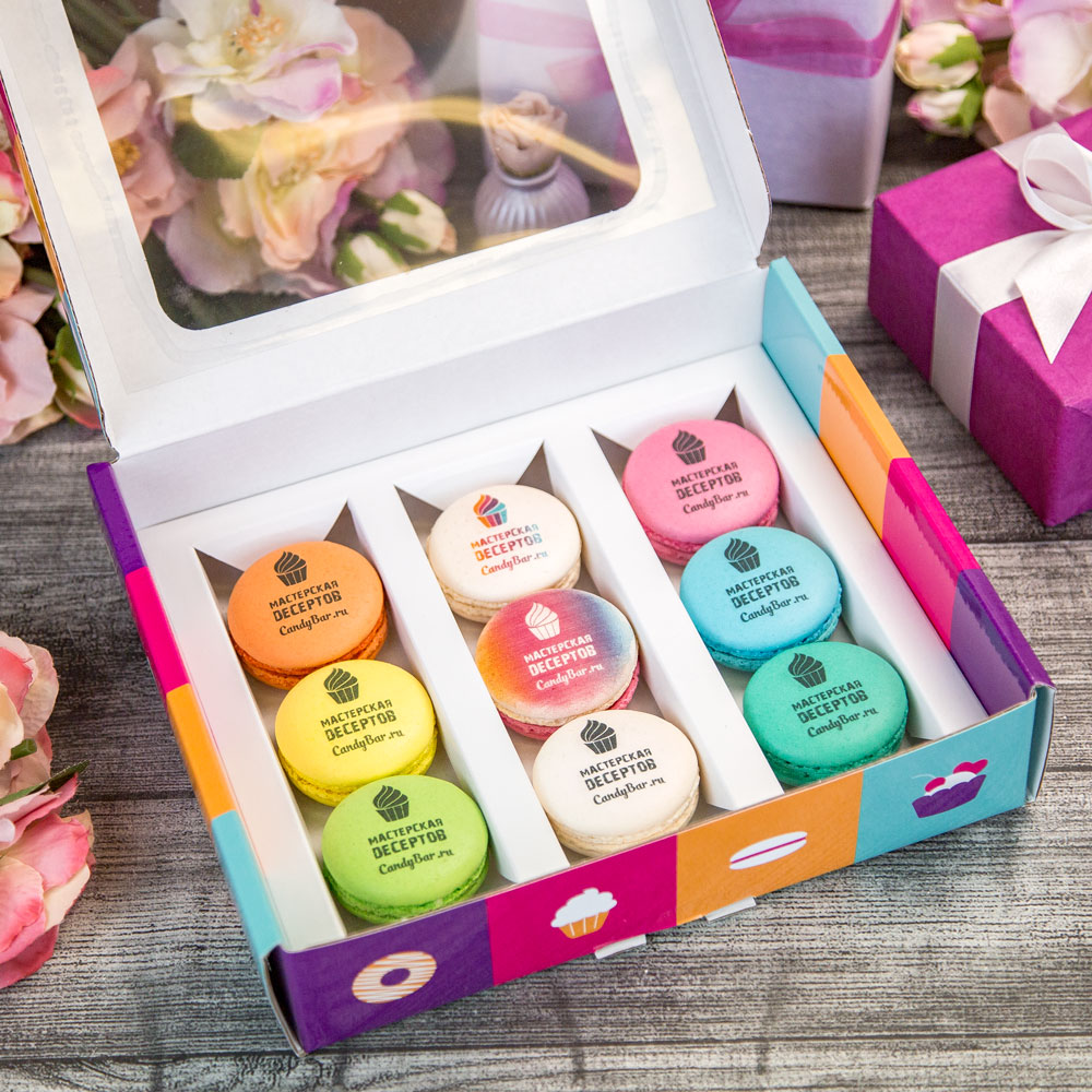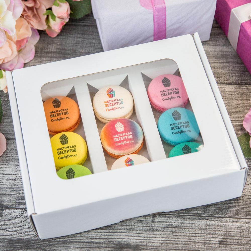 Набор макарун с логотипом 9 шт. - белая или цветная коробка на выбор.<br>