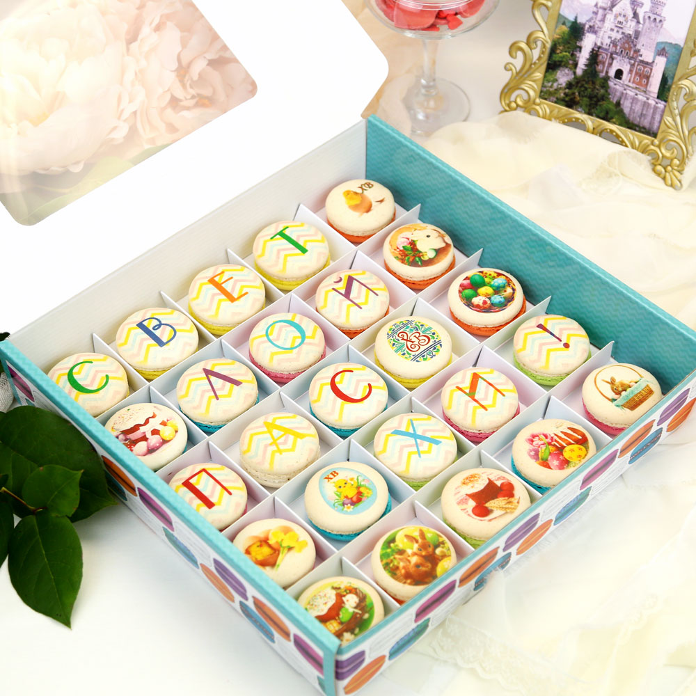 - Сахарная пудра, миндальная мука, белок, кондитерская начинка