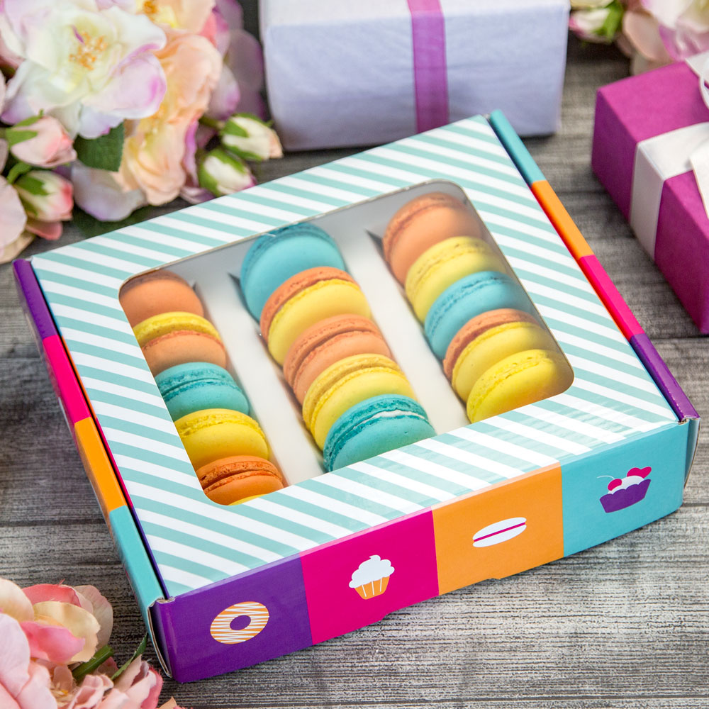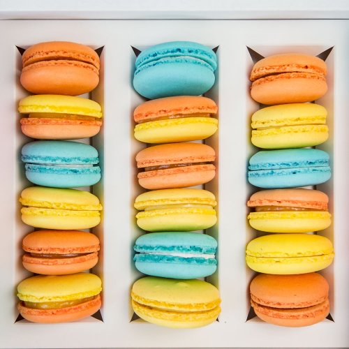 Все описаниеНабор из 18 макарун с тропическими начинками.