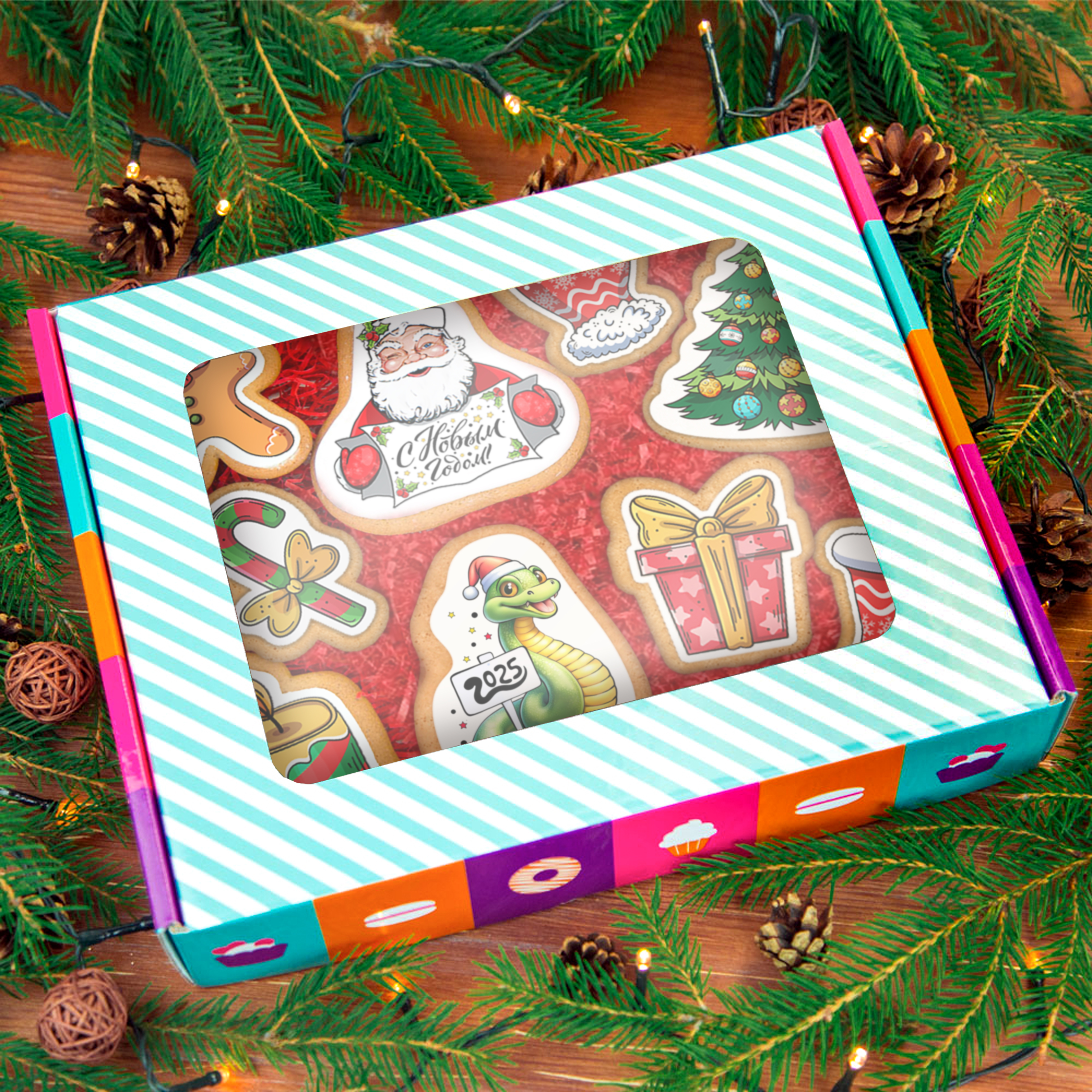 Новогодний подарочный набор имбирного печенья - пряники в форме символов Нового года в красивой коробке.