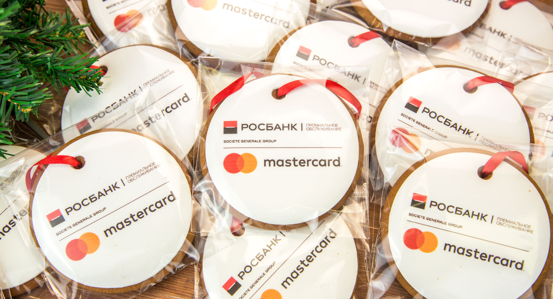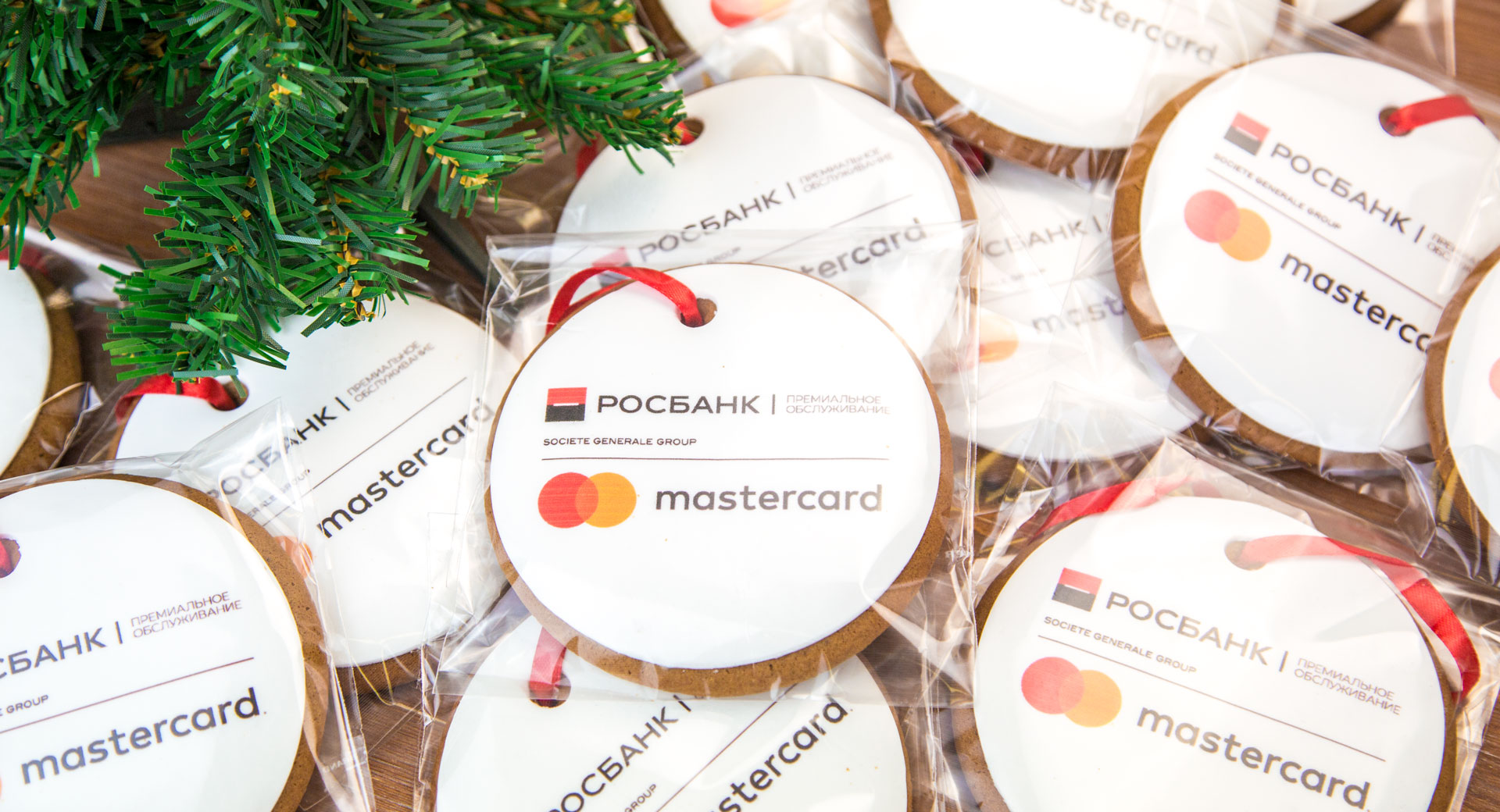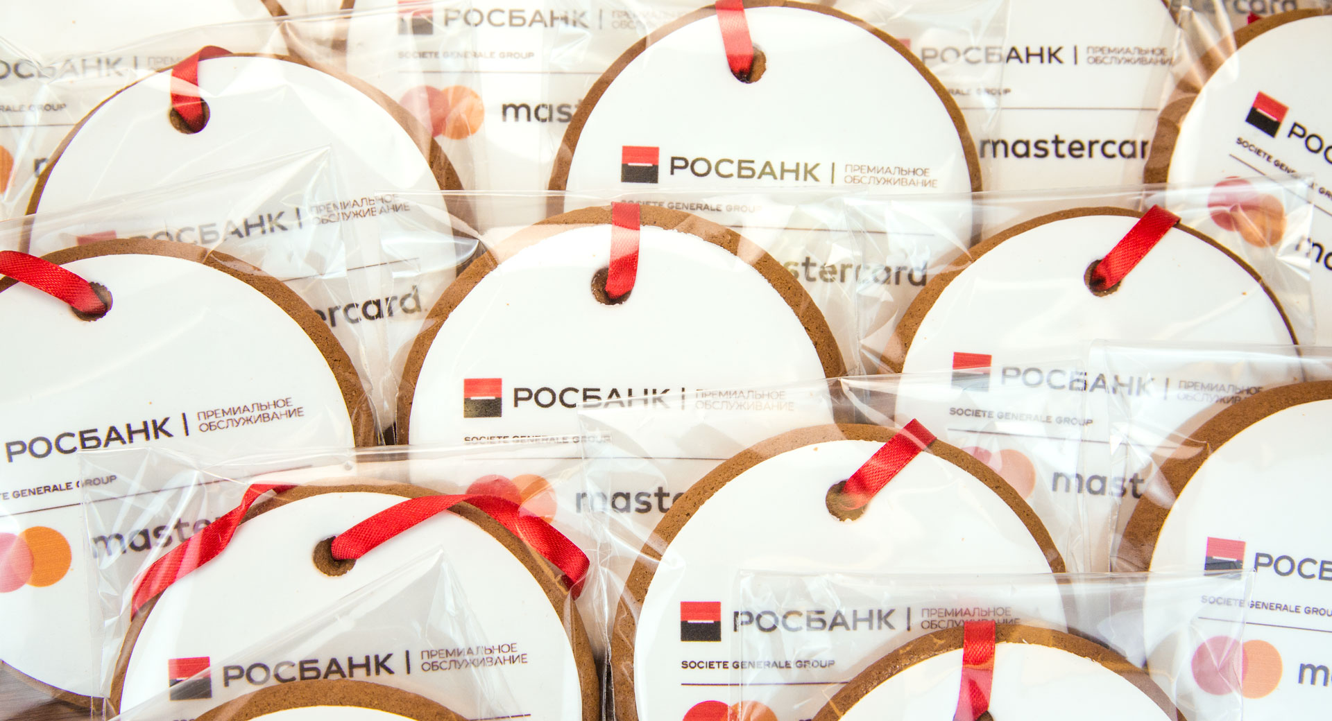 Корпоративный подарок логотипом от РОСБАНК - брендированное печенье