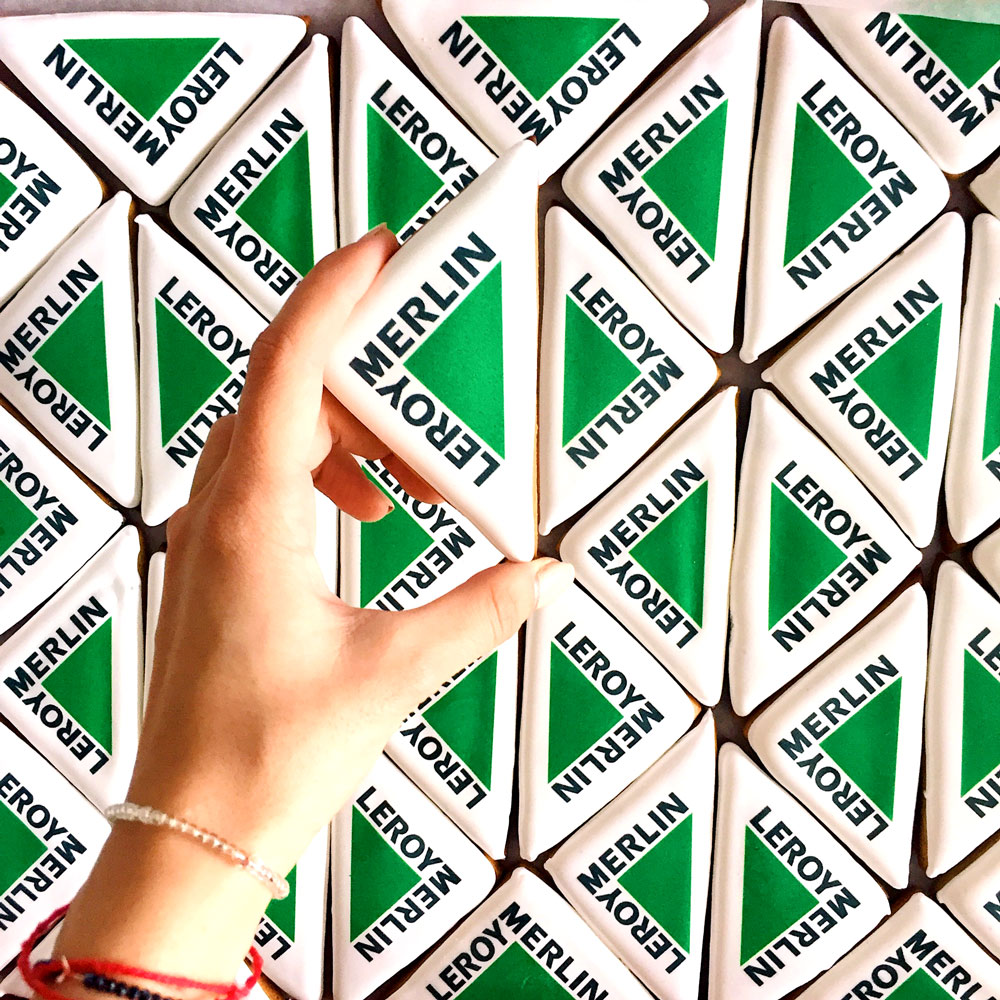 Сладкий подарок для клиентов от Леруа Мерлен - имбирный пряник с логотипомНаши специалисты ответят на любой интересующий вопрос по проекту Заказать услугу ? Фотогалерея