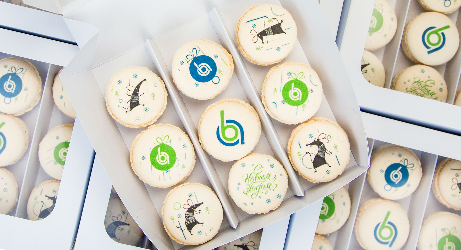 Сладкие подарки с логотипом компании на десертах и упаковке