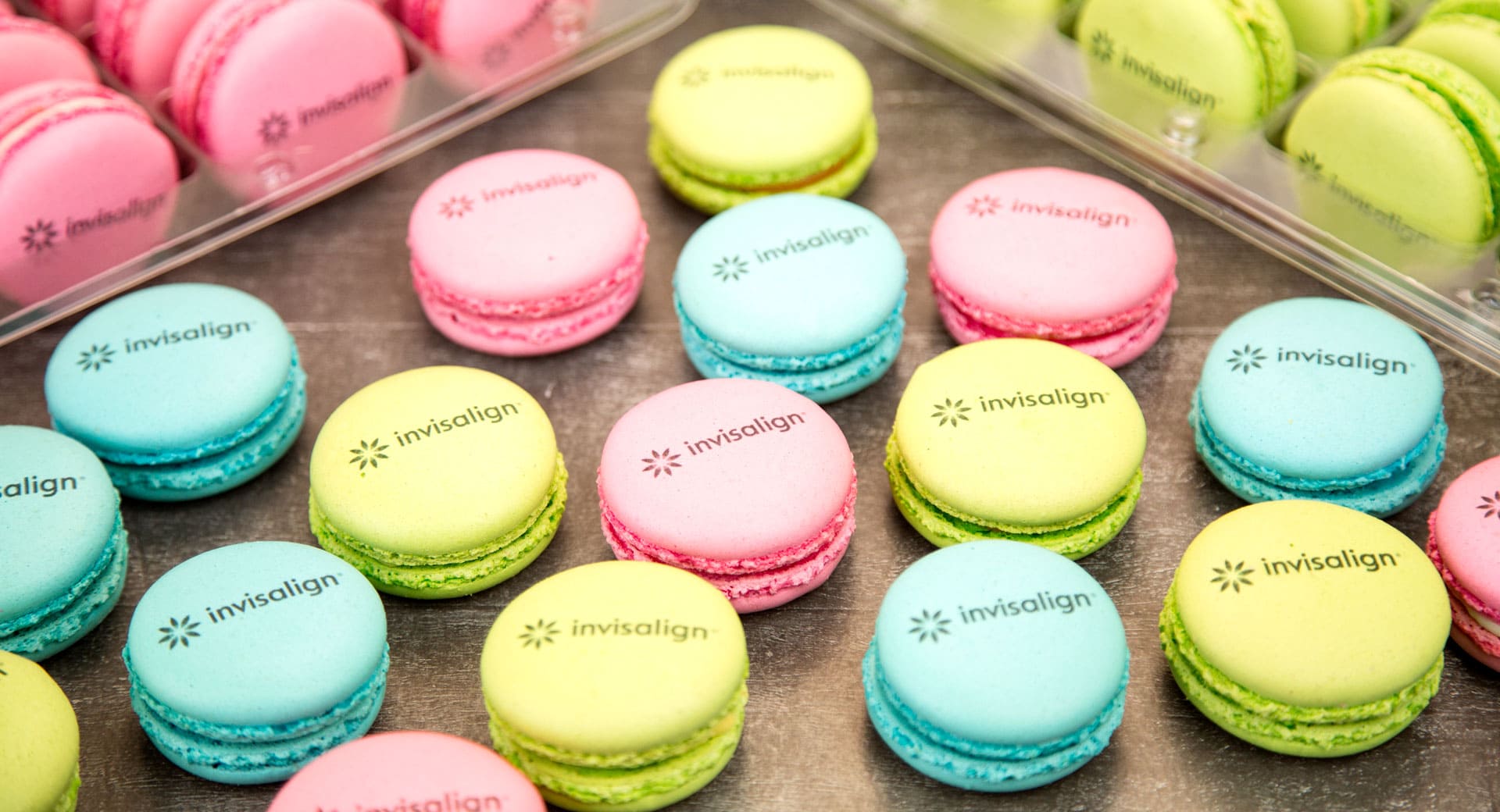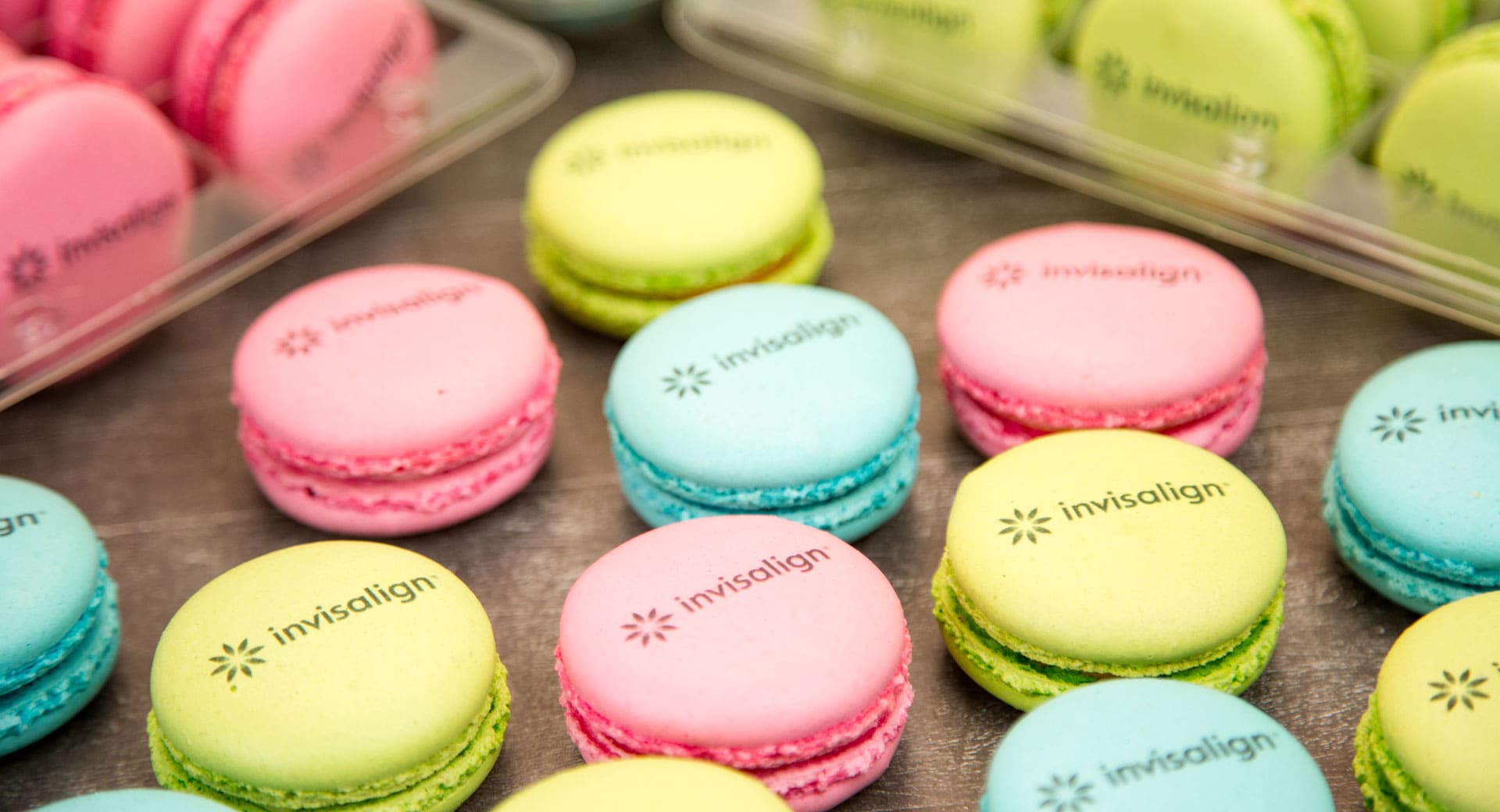 Подарки партнерам от компании Invisalign - цветные макаруны с лого