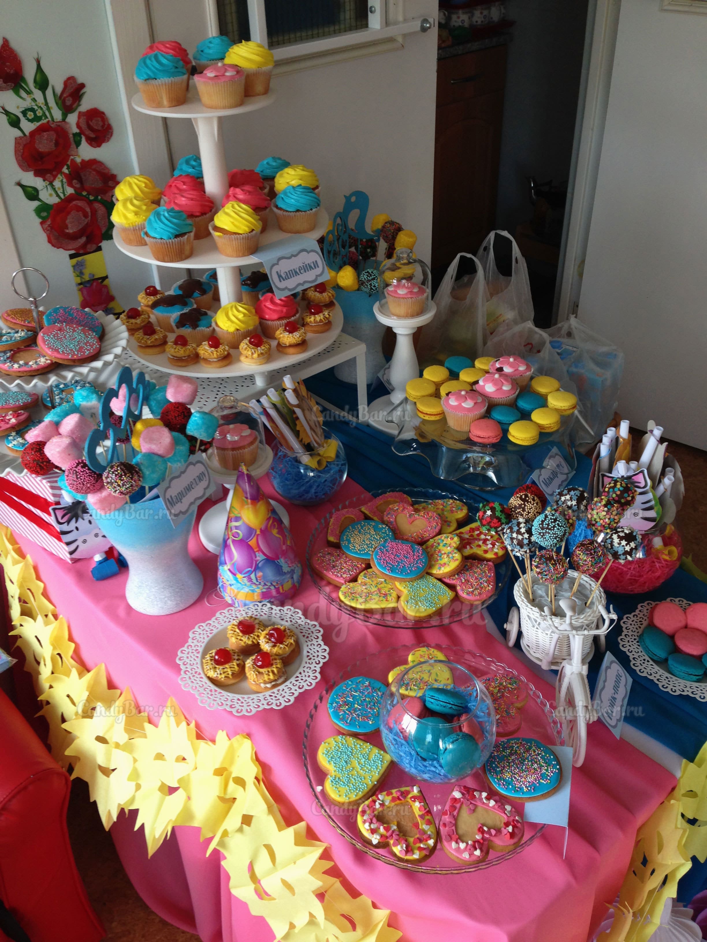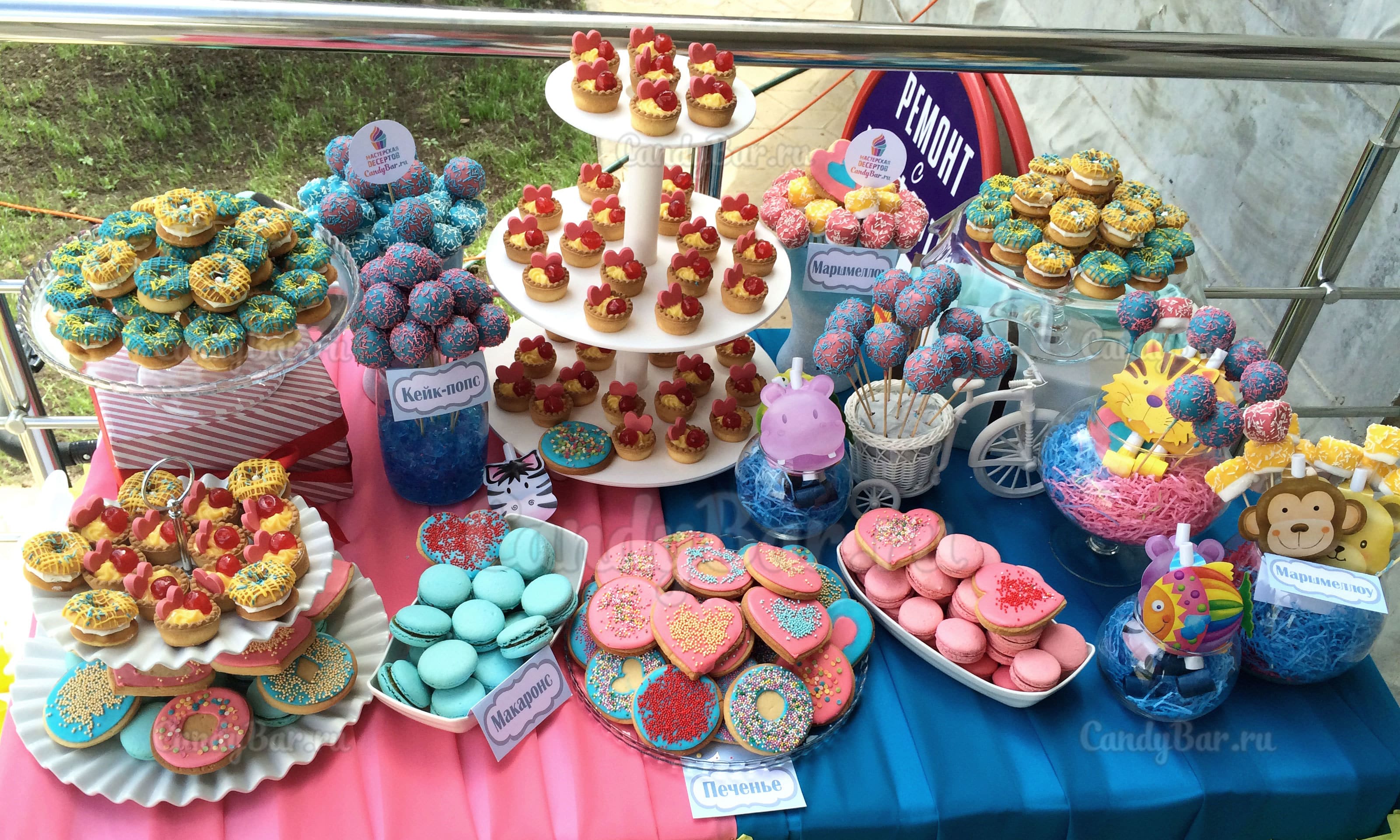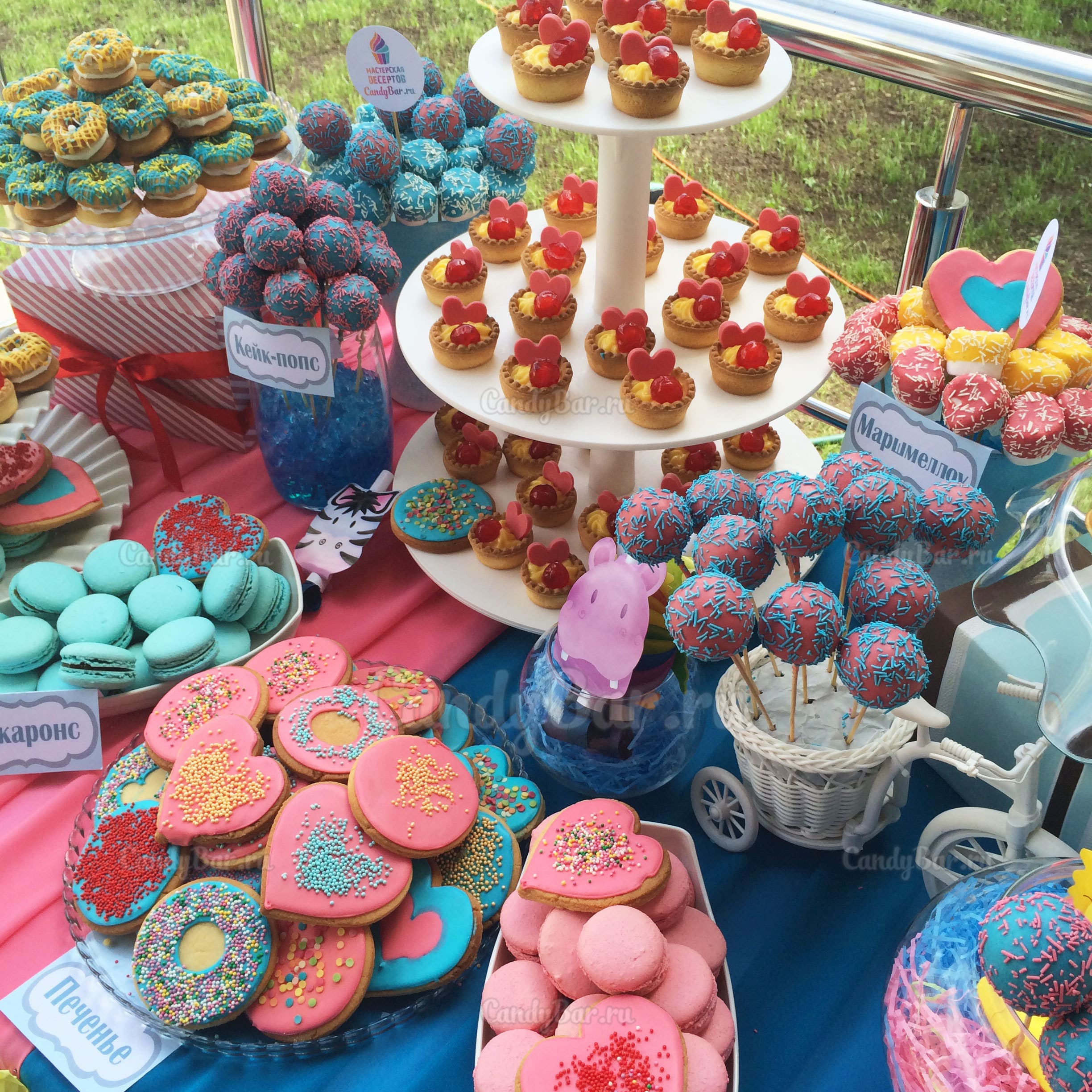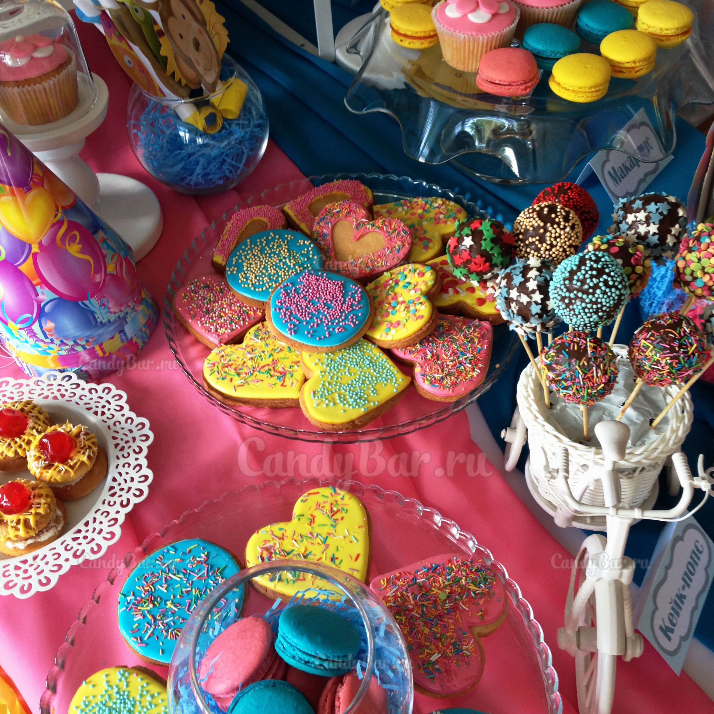 Красиво оформленный кэндибар всегда привлекает к себе внимание. Детский сладкий стол станет отличной фотозоной и подарит отличные воспоминания не только ребенку, но и всем гостям. Качественные десерты собственного производства, такие как капкейки с кремом и мастикой, разноцветные макарони (макаронс или макаруны), вкусные кейк-попсы, круглые кейк-боллы, фигурное печенье, аппетитные пончики понравятся всем без исключения и станут аппетитным украшением праздника!