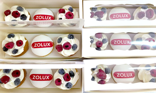 Корпоративные подарки от компании ZOLUX - капкейки с логотипом и свежими ягодами