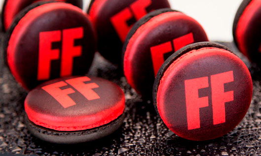 Сладкий подарок для клиентов от Киноцентра - черные макаруны с лого