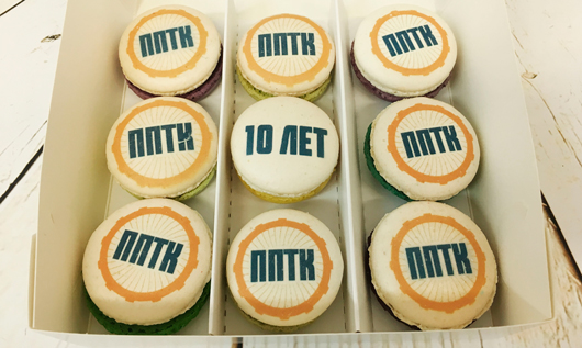 Корпоративный подарок от компании ППТК - лого на макарунах и упаковке