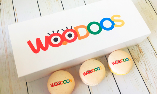 Корпоративный подарочный набор от WOODOOS - логотип на макарунах и упаковке