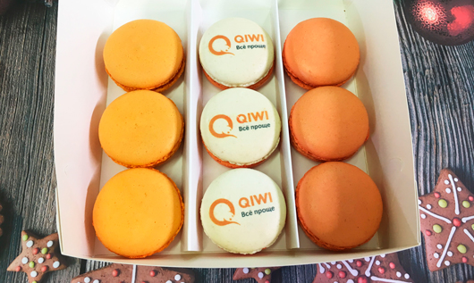 Сладкий подарочный набор от компании Qiwi - брендирование макарун и упаковки