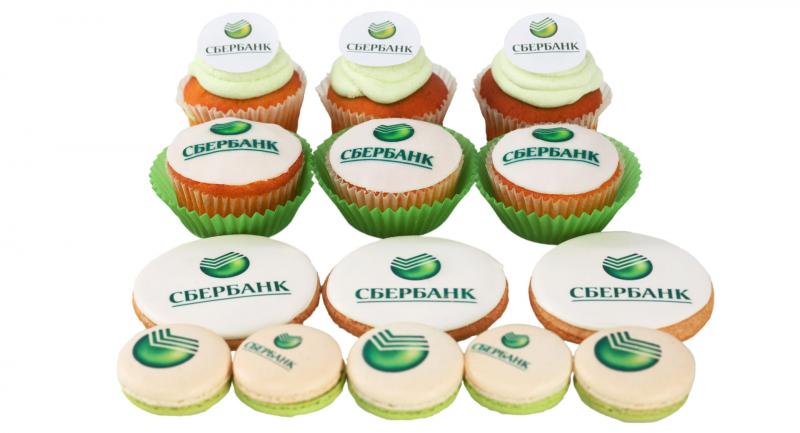 Корпоративные подарки от Сбербанка - макаруны и упаковка с логотипом