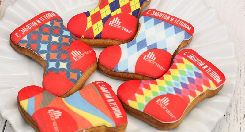Корпоративный подарок на Новый год от Pioneer - набор пряников с логотипом
