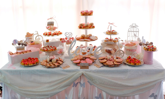 Кэнди бар на свадьбу в бежево-розовом цвете